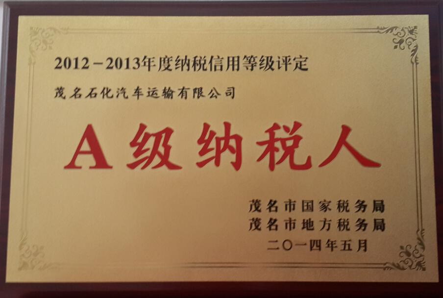 2012-2013年度納稅等級(jí)評(píng)定